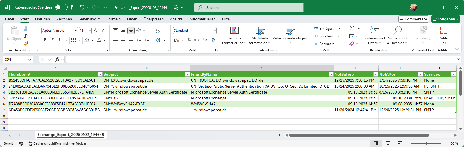 - Verwendung: Import in Excel, Datenbanken, Monitoring-Tools
