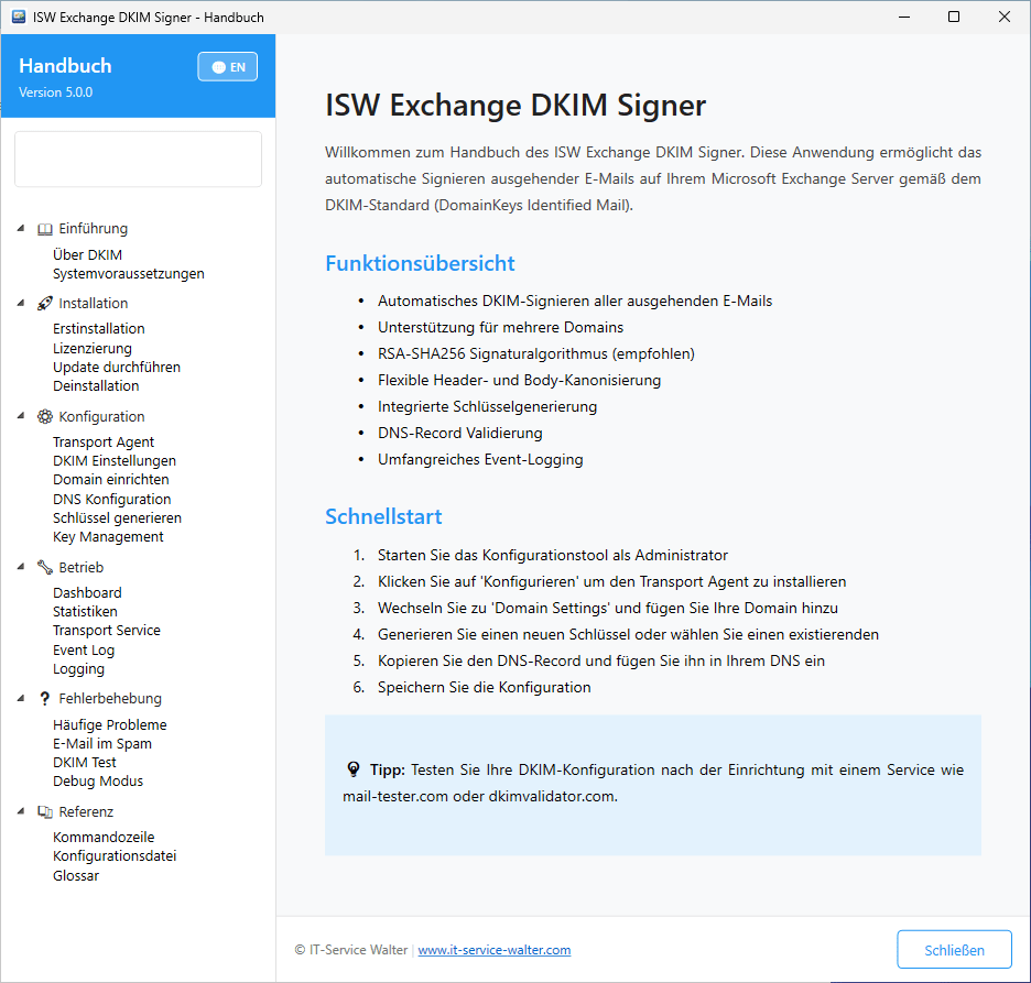 Produktinformation Exchange DKIM-Signer 5.0
