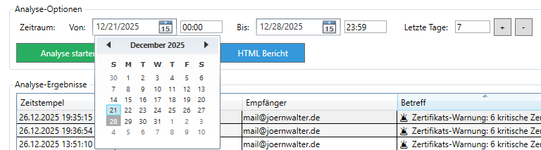 - Zeitraum festlegen – Analysezeitraum eingeben (1-365 Tage)