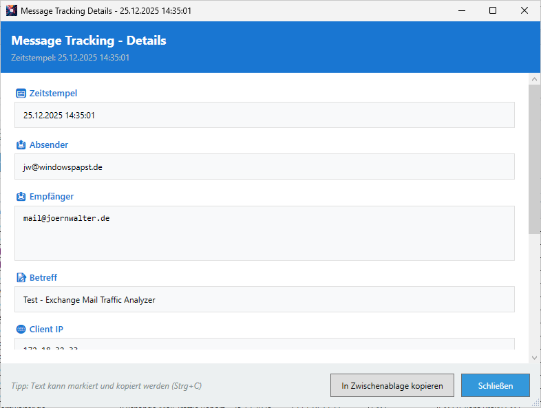 Dieses Tool richtet sich an IT-Administratoren, Exchange-Spezialisten und Sicherheitsverantwortliche, die ihre E-Mail-Infrastruktur auf Sicherheitslücken überprüfen und einen authentifizierten E-Mail-Versand sicherstellen möchten.
