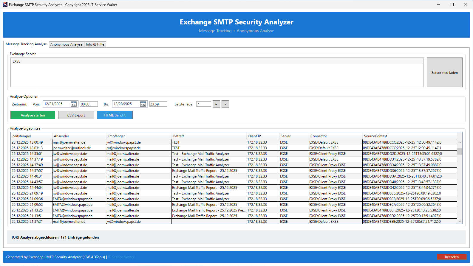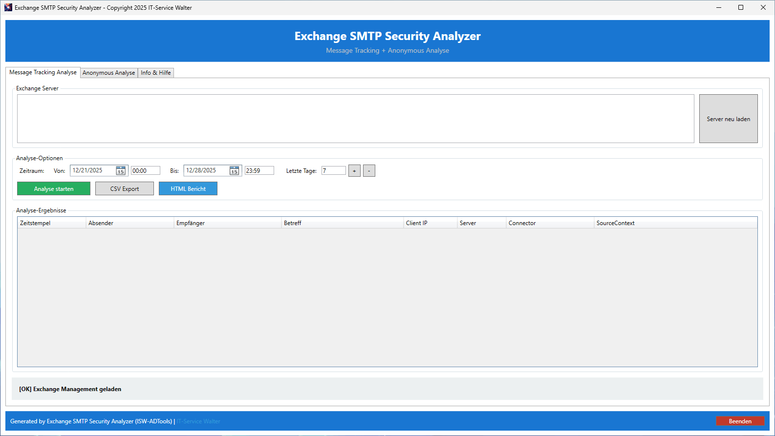 - Exchange SMTP Security Analyzer ausführen