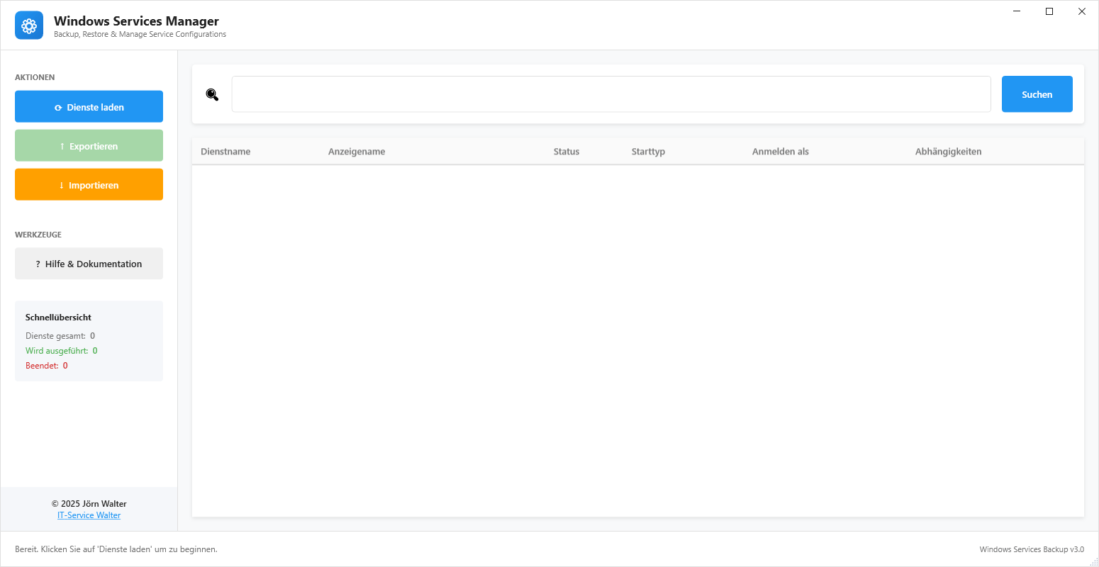 - ⏹ Stoppen: Beendet einen laufenden Dienst (mit Bestätigung)